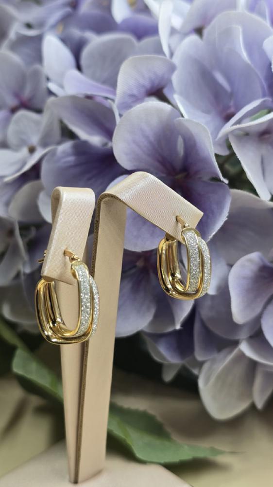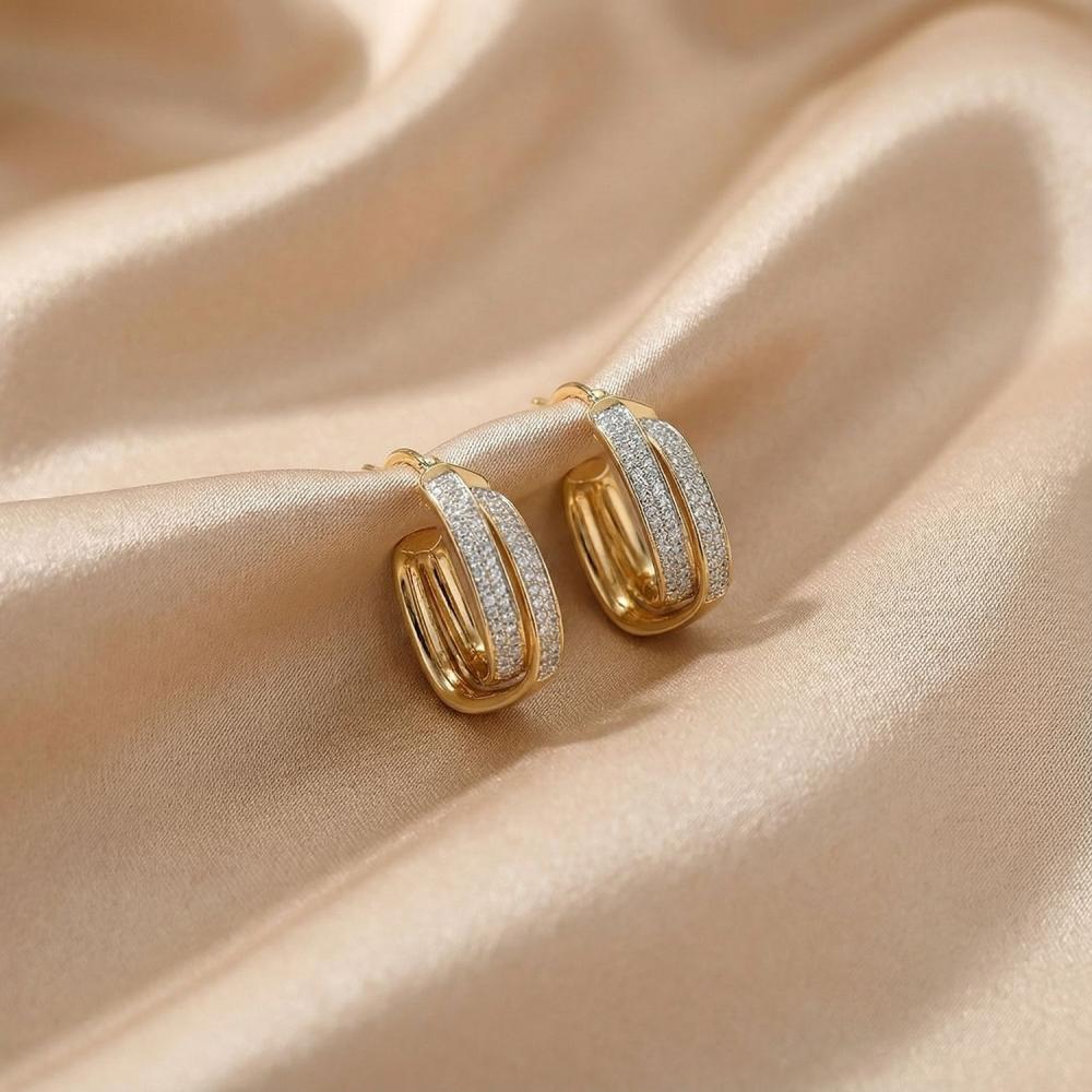 - حلق ذهب متداخل بلمعة عيار 18 يناسب المناسبات الرسمية ليضيف عليكِ لمسة من الفخامة في كل إطلالة.