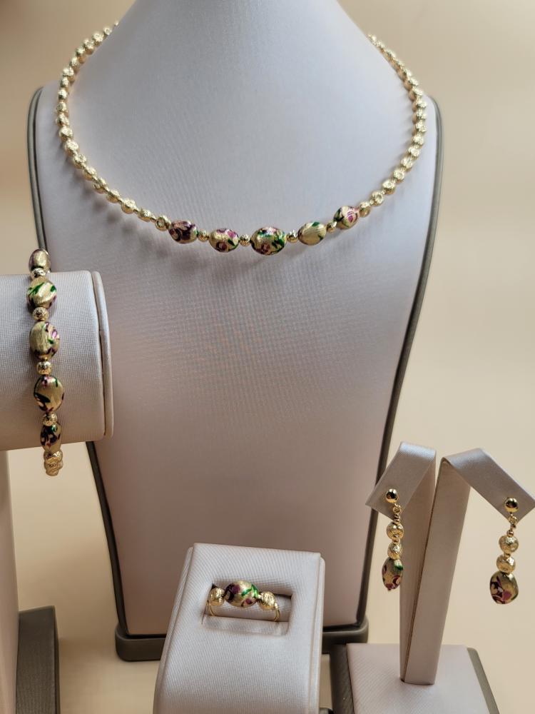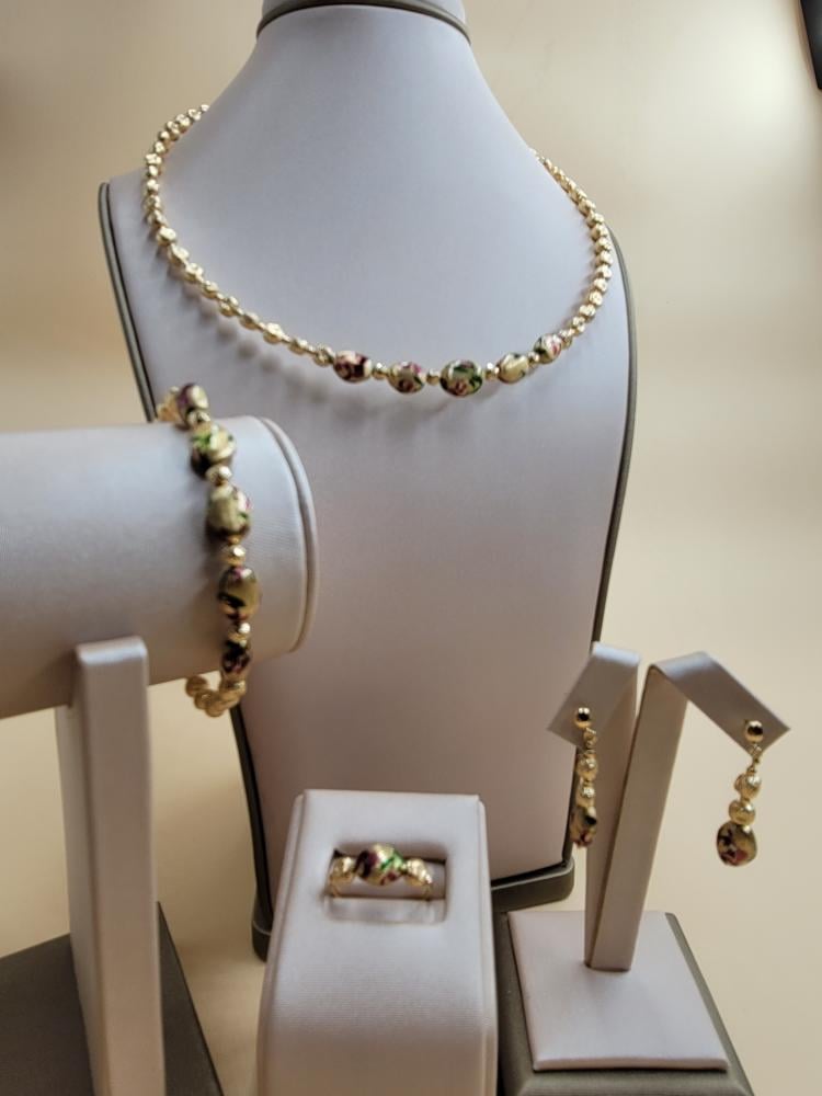 طقم فيكتوري مميزبرسم ورد جوري ذهب - عيار 18